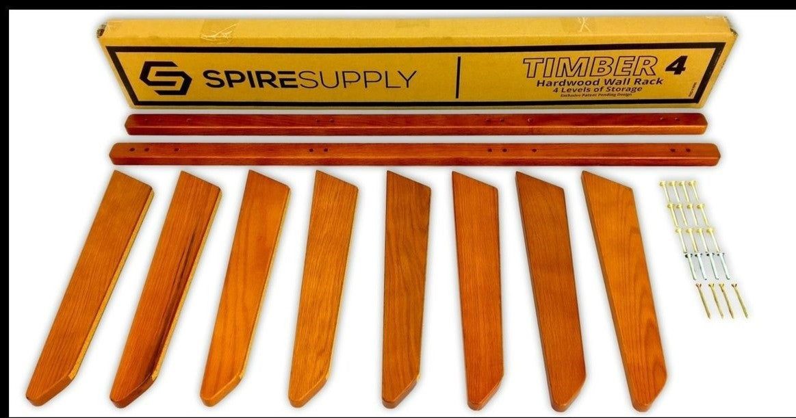 Display your entire surfboard quiver on this stylish wood rack The Timber Wood Surfboard Rack is a stylish wall rack that holds up to 4 boards. It is made from solid American Oak and finished with an elegant stain to make it look great in any room. With the horizontal orientation on your wall, this rack is a very space-efficient way to get all your boards up and out of the way. Stop tripping over your beautiful boards and get them up on the wall to show off!