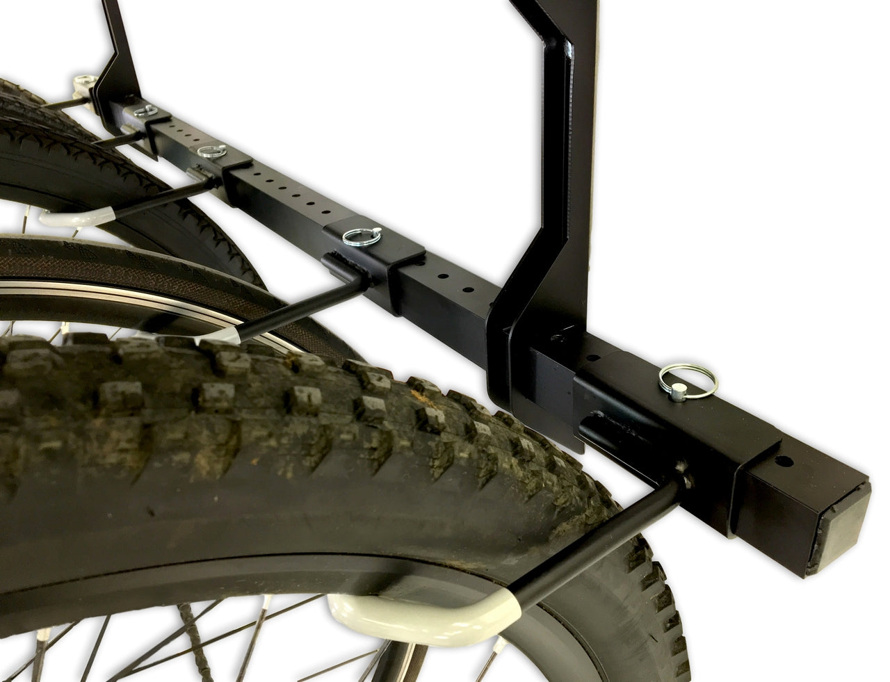 What bikes will it hold? The wheel hooks are each 5cm wide by 12cm deep to accommodate bikes of nearly any size - standard road bikes, mountain bikes, and beach bikes - we do not recommend this rack for fat tire bikes. Hang your bikes by the front wheel using the rubber-coated hook to provide a gentle, secure grip on your bike's rim. Each attachment can hold up to 20kg, 5 attachments for a total of 100kg