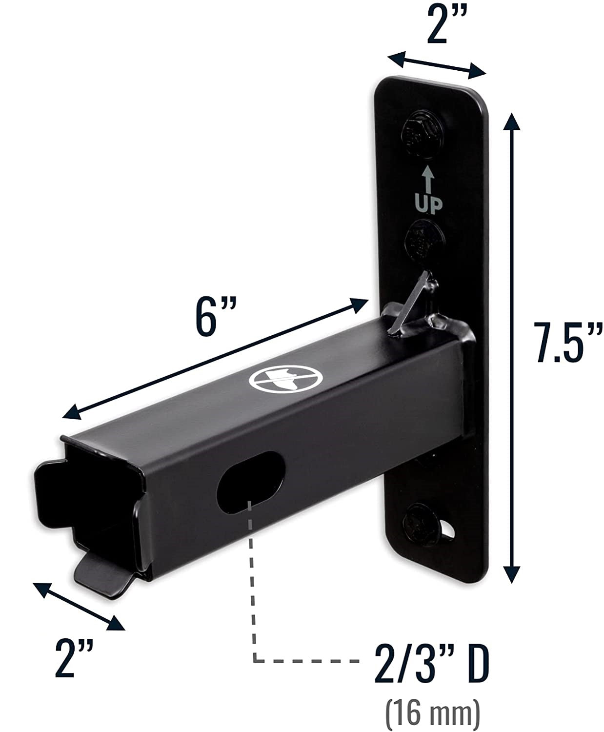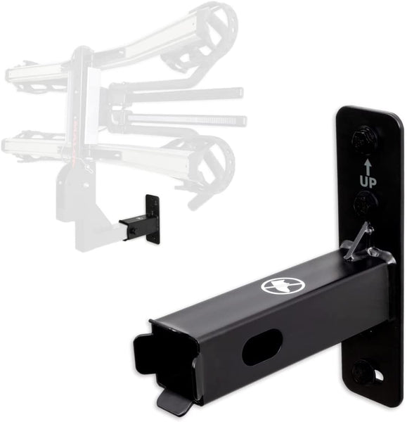 What items will it hold? The Hitch Wall Mount offers an easy access mounting solution to organize any of your 2” hitch racks. Each storage mount has a flared square opening and is 6" deep, making it compatible with the majority of bike and cargo hitch racks on the market. Cut into the steel square tubing is a slot designed to allow the insertion of hitch pins to hold your hitch rack securely and safely in the mount. Perfect for hanging, swing-away, tilting, platform, mobility scooter, and cargo hitch racks!